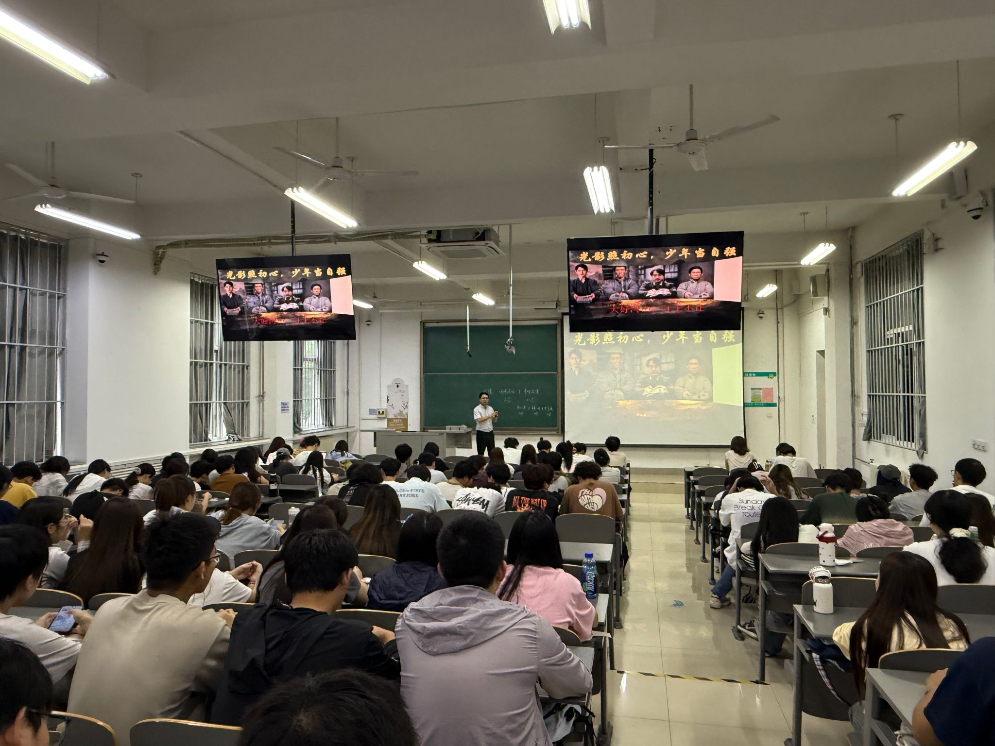 在“毛泽东思想和中国特色社会主义理论体系概论”课堂上,老师们以“光影照初心,少年当自强”为主题,通过展示一系列反映中国革命、建设和改革不同时期的经典影像资料,带领同学们穿越历史长河,感受中国共产党带领人民不懈奋斗的光辉历程。郭霆老师详细讲解了马克思主义中国化时代化的理论成果是如何在实践中形成和发展的,让同学们深刻认识到这些理论是中国共产党应对不同时期挑战、推动中国社会发展的强大思想武器。