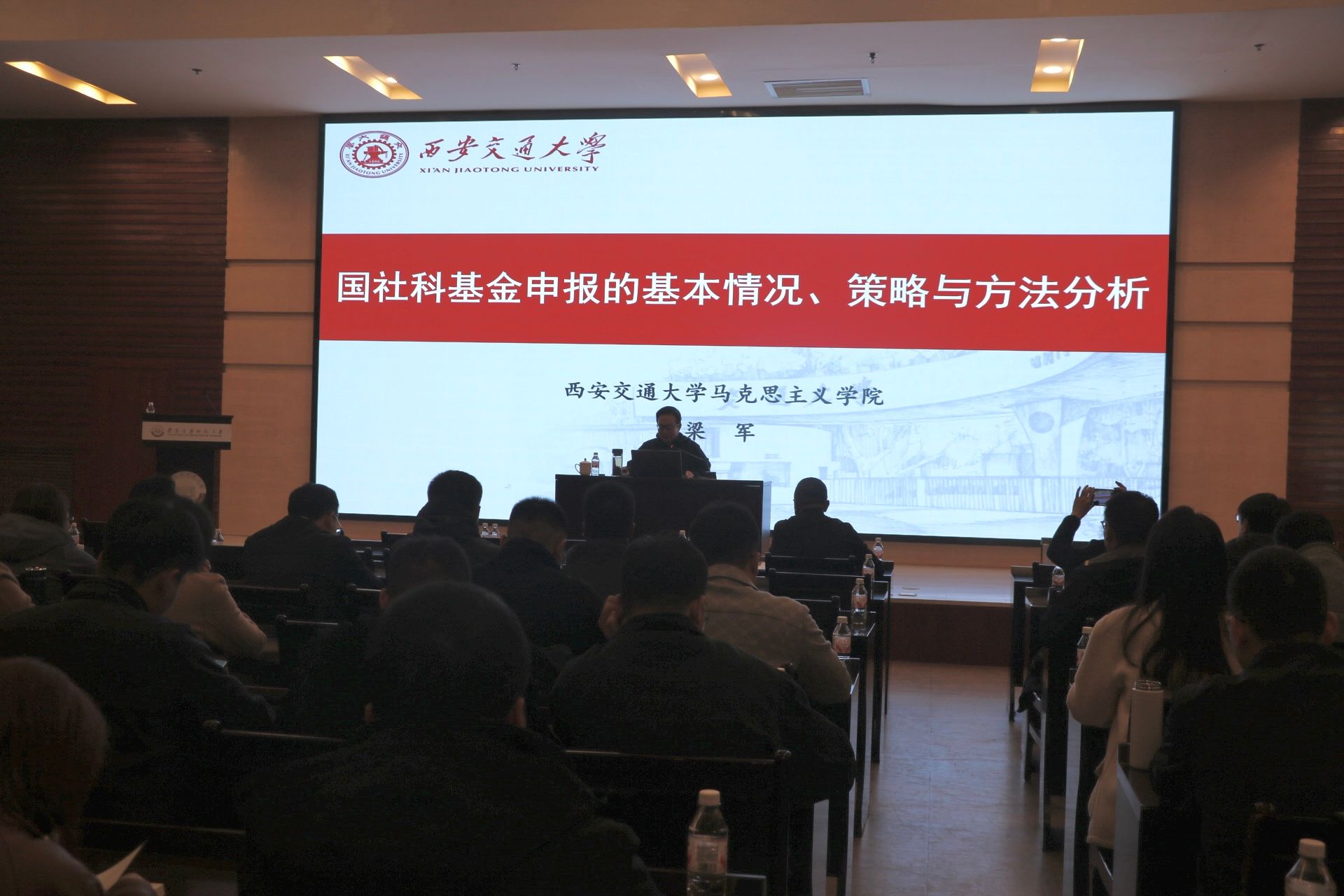学院邀请西安交通大学马克思主义学院梁军教授作题为“国社科基金申报的基本情况、策略与方法分析”的国家社科基金申报辅导报告。梁军教授结合自己成功申报的经验,从国社科基金申报的基本情况、策略与技巧三个方面展开阐述。一是国家社科基金申报的基本情况。梁教授指出,高校作为国家社科基金申报的核心主体,科研资源分布日趋多元。他分析了2024–2025年申报趋势、政策导向及评审标准,强调国家战略引领课题设置,同时地方高校与青年学者崛起推动科研生态多元化。社科研究更注重问题导向、学科交叉与服务社会,研究者应紧跟国家战略、发挥自身优势、勇于创新。二是国家社科基金申报的策略。针对不同学科领域,梁教授强调马列·科社/马克思主义理论领域应注重将理论创新与时代课题相结合,深入研究经典著作并挖掘当代价值,关注马克思主义中国化时代化重要概念的研究。建议学者构建清晰的学术框架,化繁为简、化生为熟。三是申报案例与技巧。梁教授分享了自己成功申报的经验,强调选题应“顶天立地”:“顶天”指把握国家大势与前沿,“立地”指立足实际问题,体现国家需求与问题导向,突出时代性、创新性与现实意义。