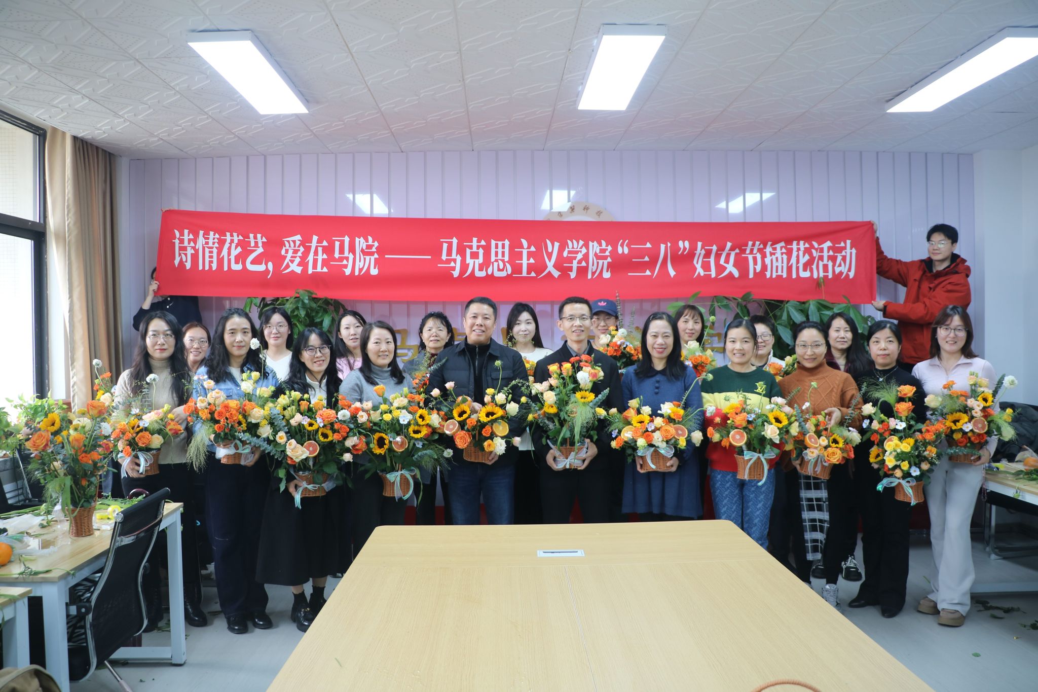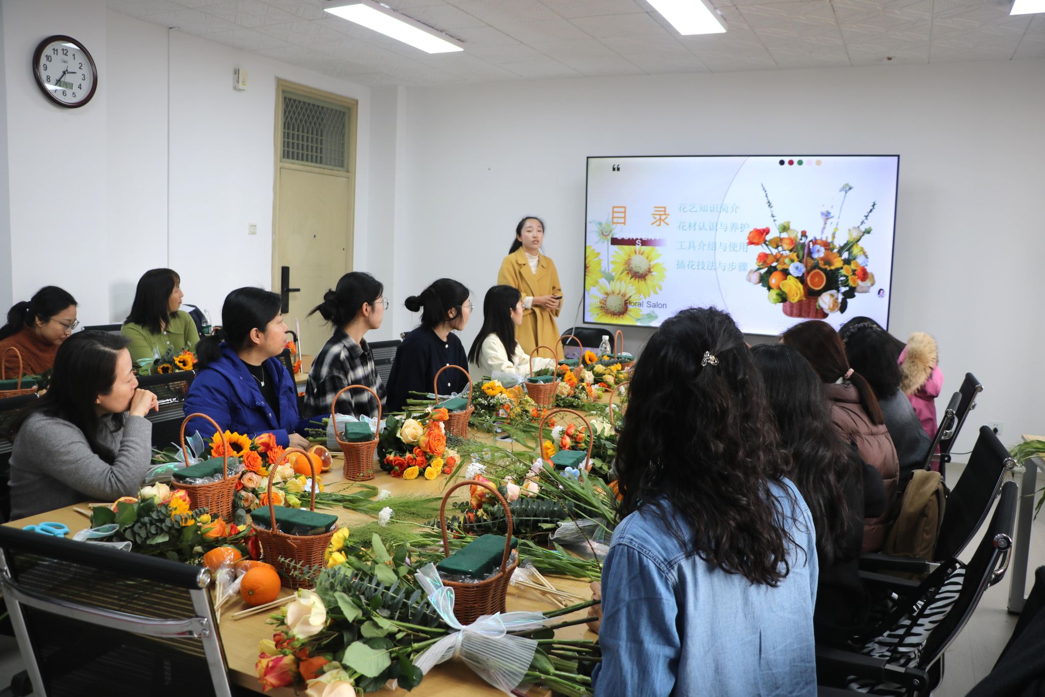 为庆祝第 116个“三八” 国际劳动妇女节,丰富学院女教职工精神文化生活,3月4日下午,马克思主义学院工会在教学大楼918会议室举办“诗情花艺,爱在马院”主题插花活动。南校区管委会崔璐老师受邀担任花艺指导,学院多位女教师欢聚一堂,在花香与笑语中共度温馨节日。